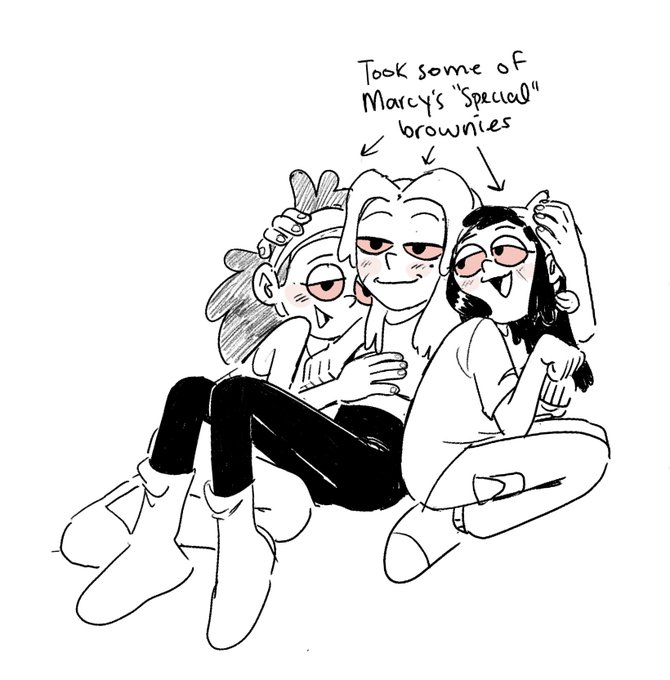 Happy holidays 🍃🍃 college au sashannarcy where Marcy visits Anne and Sasha and brings some of her “special” brownies #sashannarcy #AnneBoonchuy #SashaWaybright #MarcyWu #amphibiacollegeau #amphibia