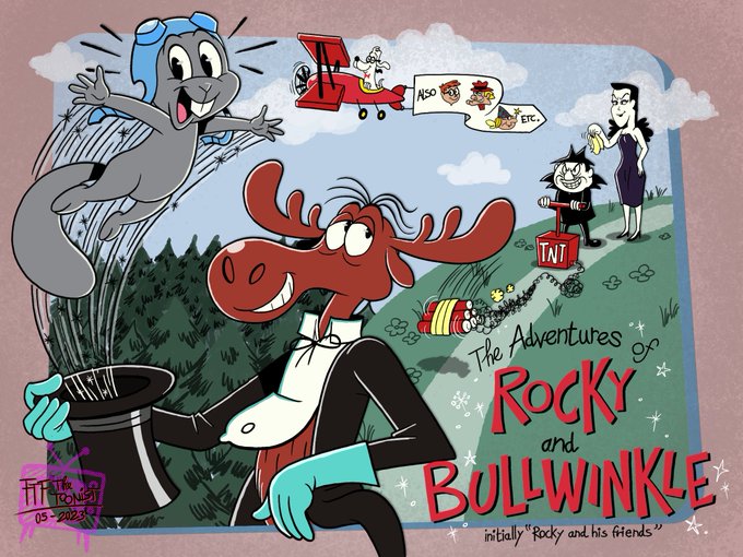 [NEW ORIGINAL] The grand famous television series, exclusive in US, Rocky and Bullwinkle (& Friends) who follow their serial spy-like adventures. #RockyAndBullwinkle #MrPeabodyAndSherman #JayWard #ClassicCartoons #SaturdayMorningCartoons #Television #Vintage #Year1959 #1960s