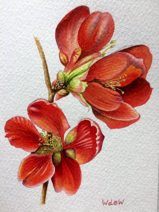 Quince blossom Watercolour & pencil #saturdayvibe #plants #flowers #painting #drawing #artist #ArtistOnTwitter #artistsoninstagram #illustration