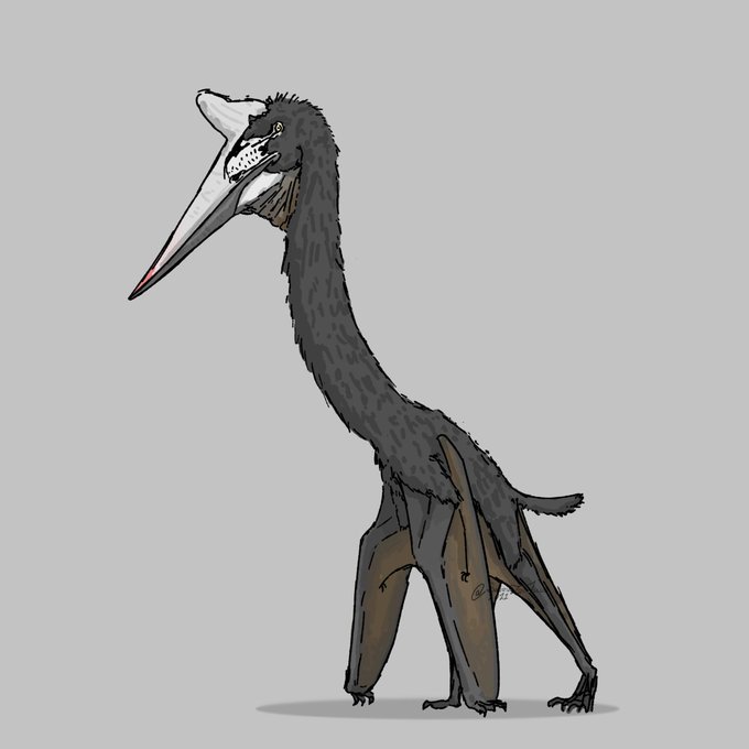 fanart for @SaurianGame used their "quetz" design, the material Saurian's Quetz is based off of is actually "The Hell Creek Azhdarchid" (BMR P2002.1) which should really be referred to as Quetzalcoatlinae indet. imo. . #saurian #paleoart #paleontology #pterosaur #sketch #FANART