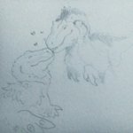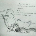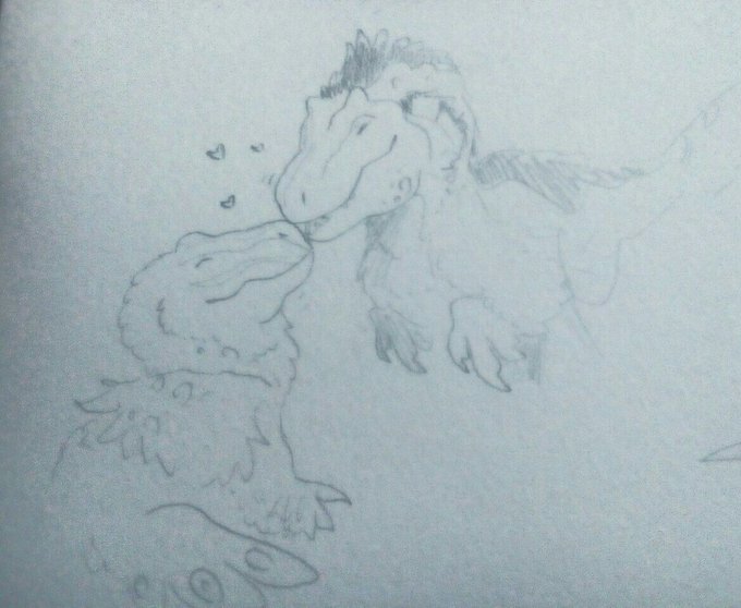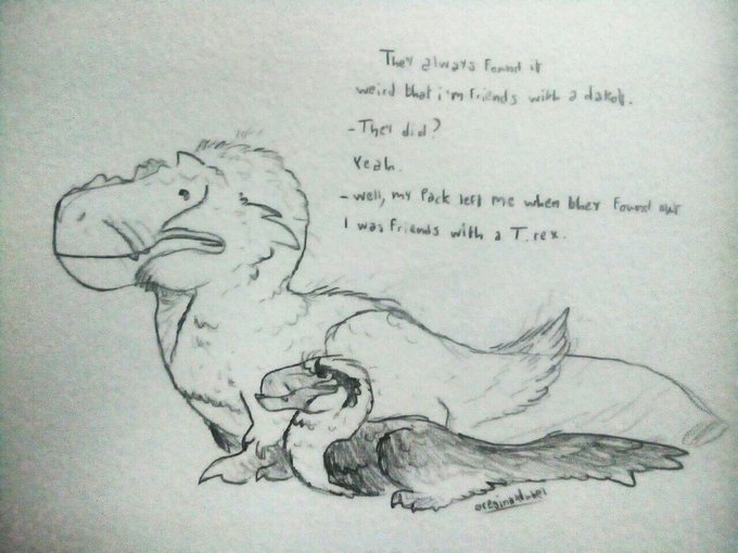 Damon and Orville talking about their past together (not sure if my writing is clear) #saurian #paleoart #dakotaraptor #tyrannosaurus #tyrannosaurid