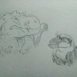 while i wait for another pc tomorrow that ill keep temporarily, heres some traditional doodles #paleoart #yutyrannus #triceratops #tyrannosaurus #saurian