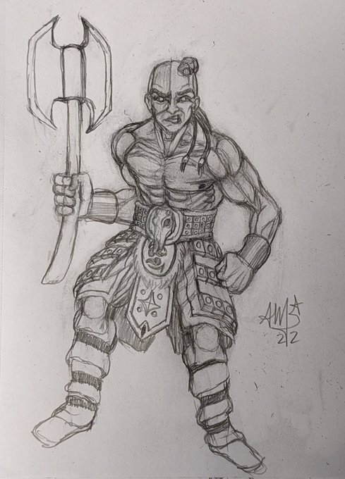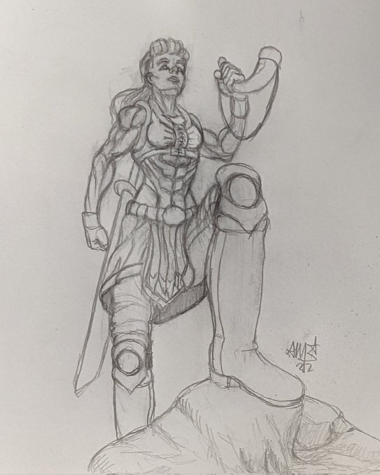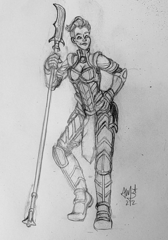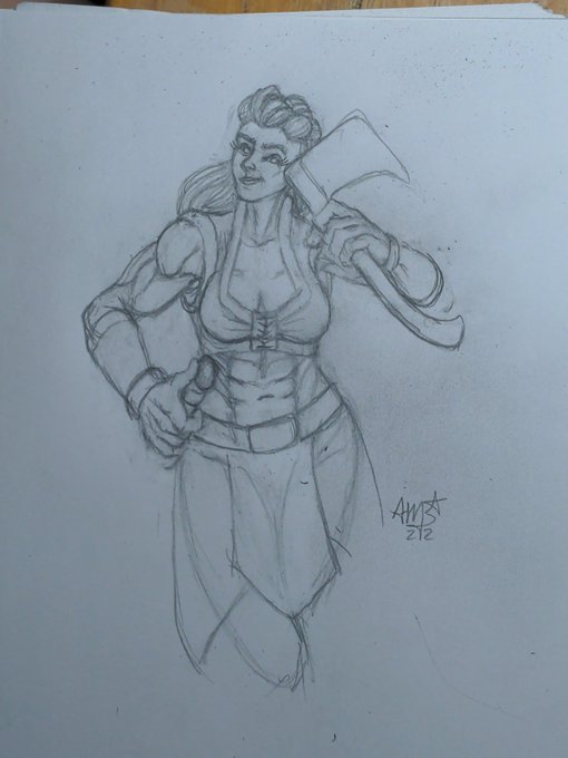 Not sure if she's an Amazon or a Barbarian hired gun. But it's something I came up with tonight. #dnd #dndart #ttrpg #rpg #rpgart #savageworlds #pencilart