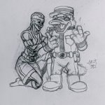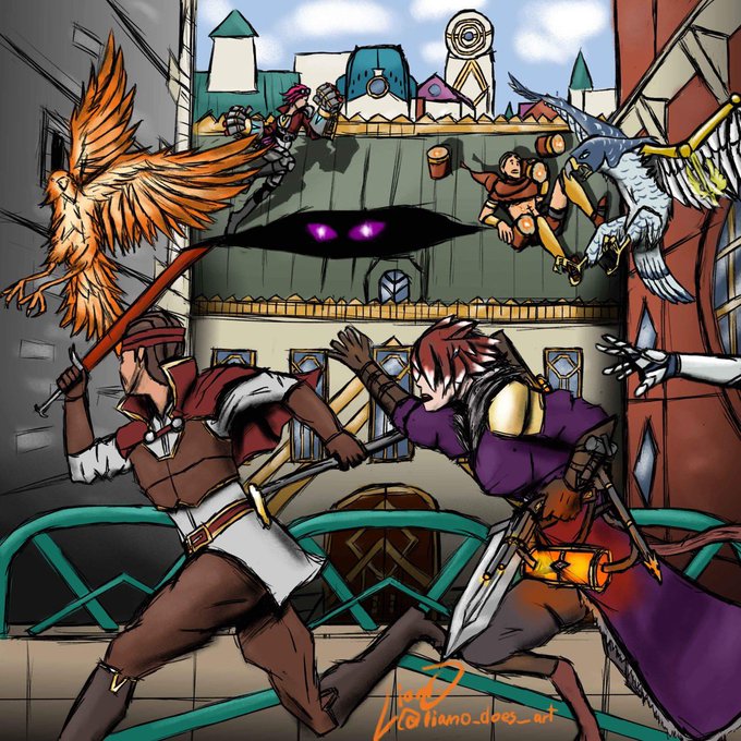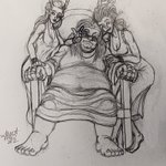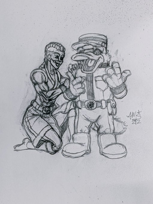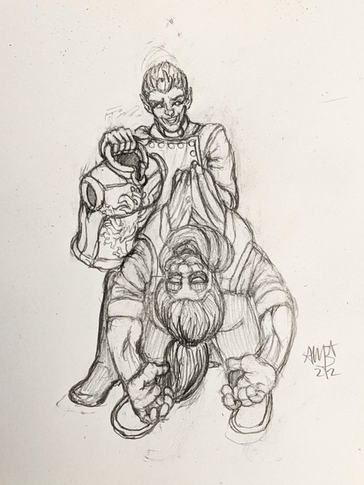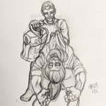 Redrew this picture of my #Kljunari blacksmith and his #Barbarian friend. #dnd #dndart #ttrpg #rpg #rpgart #savageworlds #pencilart