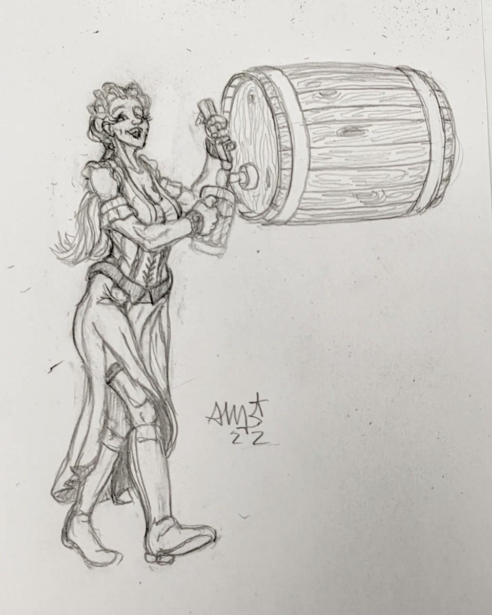 My Human Barkeep who is the love interest for one of my dwarves. She stands about 5'2". #dnd #dndart #ttrpg #rpg #rpgart #savageworlds #pencilart