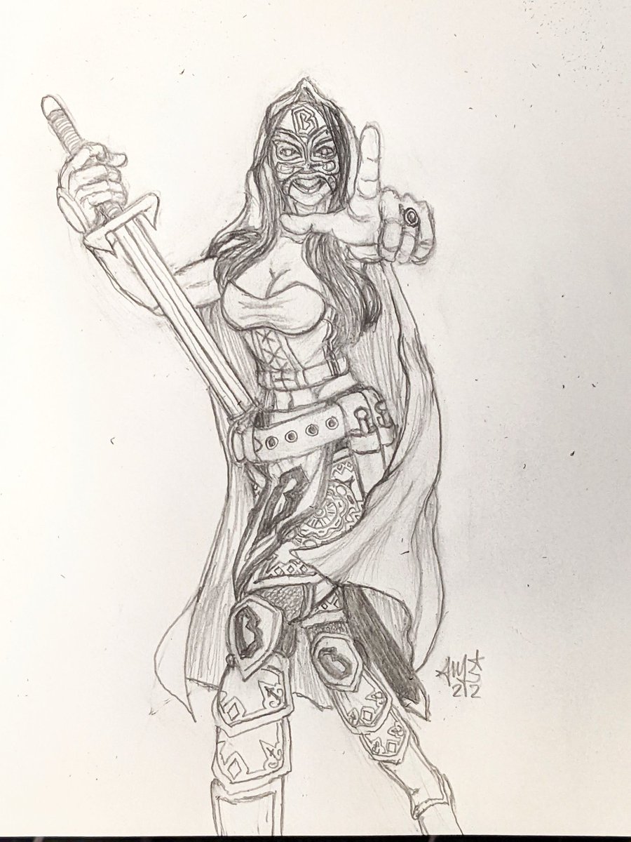 I saw a video of @baronessa_mxli and she looked like a Dungeons and Dragons character and I thought she'd look great in my series of #luchadors as #dungeonsanddragons characters. She'd be a perfect Rogue character. #dnd #dndart #ttrpg #rpg #rpgart #savageworlds #pencilart