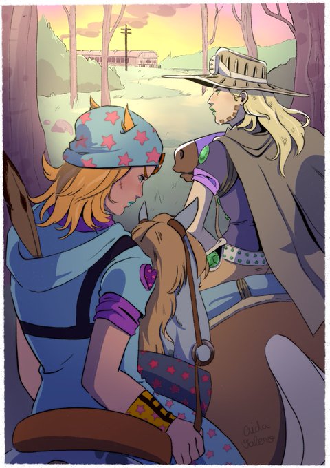 Essentials only 🤭 . I had to leave a panel out so the continuity here is a bit 👎 All panels on instagram.com/ellery_six/ . #JoJosBizarreAdventure #JJBA #jjbafanart #steelballrun #sbr #jojo_anime #gyrozeppeli #jotaro #artshare #artistontwitter #childrensbookillustration