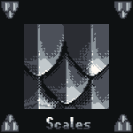 *You found a DRAGONHIDE SHIELD! "Nearly invulnerable to any sword or spell that might impede your quest. The scales are always warm to the touch." *EQUIP it now? >Y N (Rose&Rust palette) @Pixel_Dailies #pixel_dailies #scales