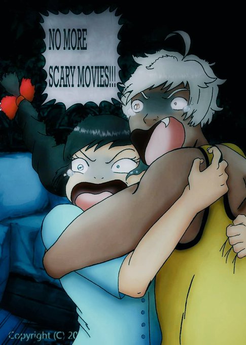 Mammon and Ren decided not to watch scary movies anymore. @edamamespoon @ObeyMeOfficial1 #obeymemammon #obeymefanart #obeymeart #obeymemc #obeyme #fanart #anime #artist #artwork #animeart #animeartist #scared #mammon