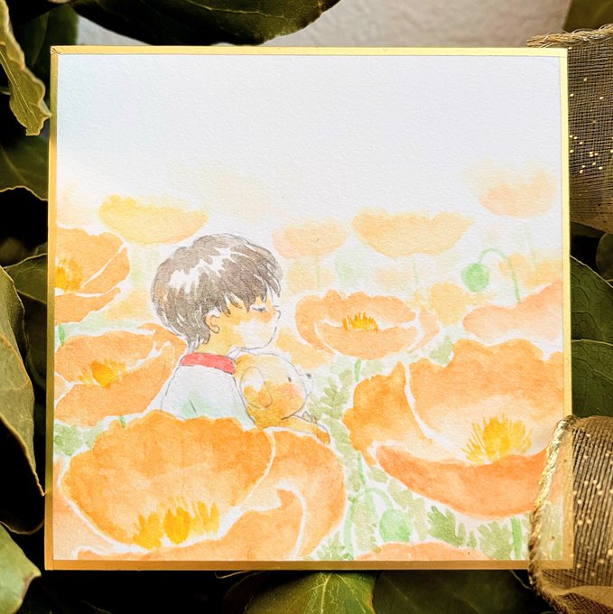 3月30日の誕生花 アイスランドポピー 花言葉は「恋の予感」 佳菜子ちゃん( @ribboncurtain )との二人展「まどろみのマーチ」(6/14〜18)にお持ちします🌷 #ミニ色紙 #ミニ原画 #watercolor #schmincke #winsorandnewton #水彩 #まどろみのマーチ