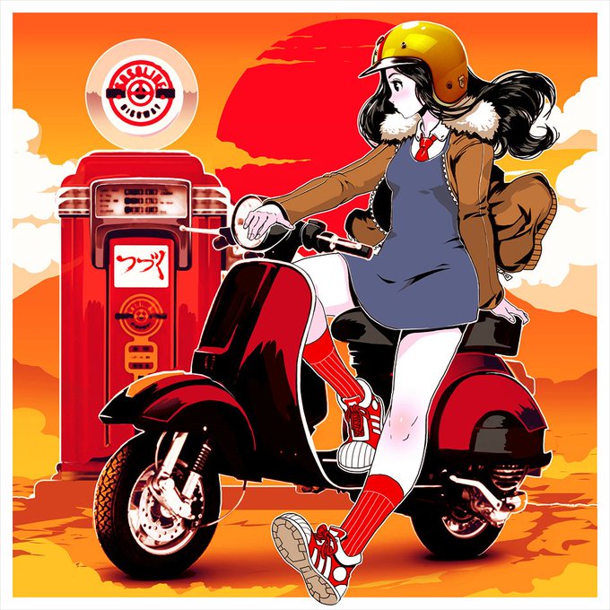 Triying a new style, inspired in #ウキヨエ She is wearing a chilean #schoolgirl uniform "jumper" DA: fav.me/dblrt9c #vespa #Atacama