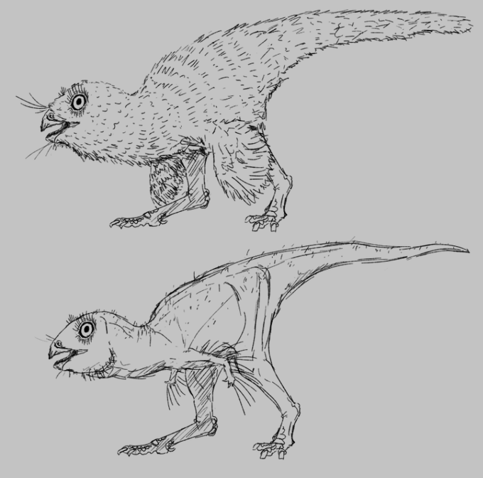 sketch of the new child fluff and non-fluff versions . #paleoart #paleontology #sciart #sciartist #scicomm
