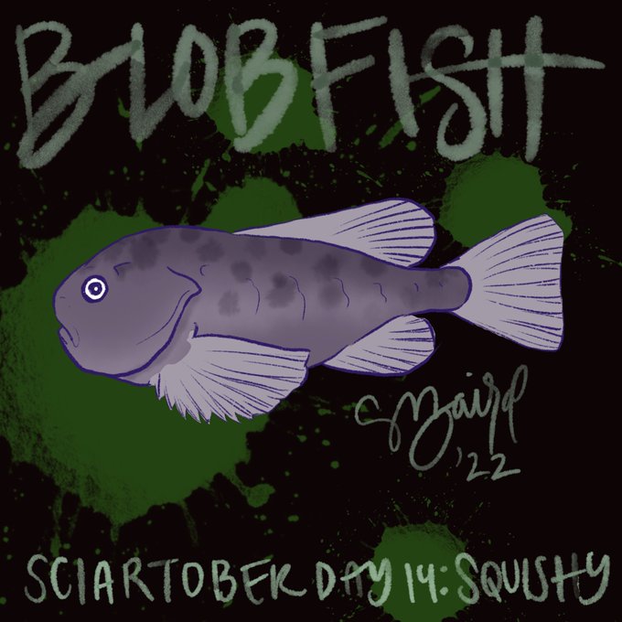 #sciartober Day 14: SQUISHY. This is what blobfish actually look like before they are so rudely ascended from the deep to be made fun of. We all have a bad angle, be nice. #SciArt #inktober2022