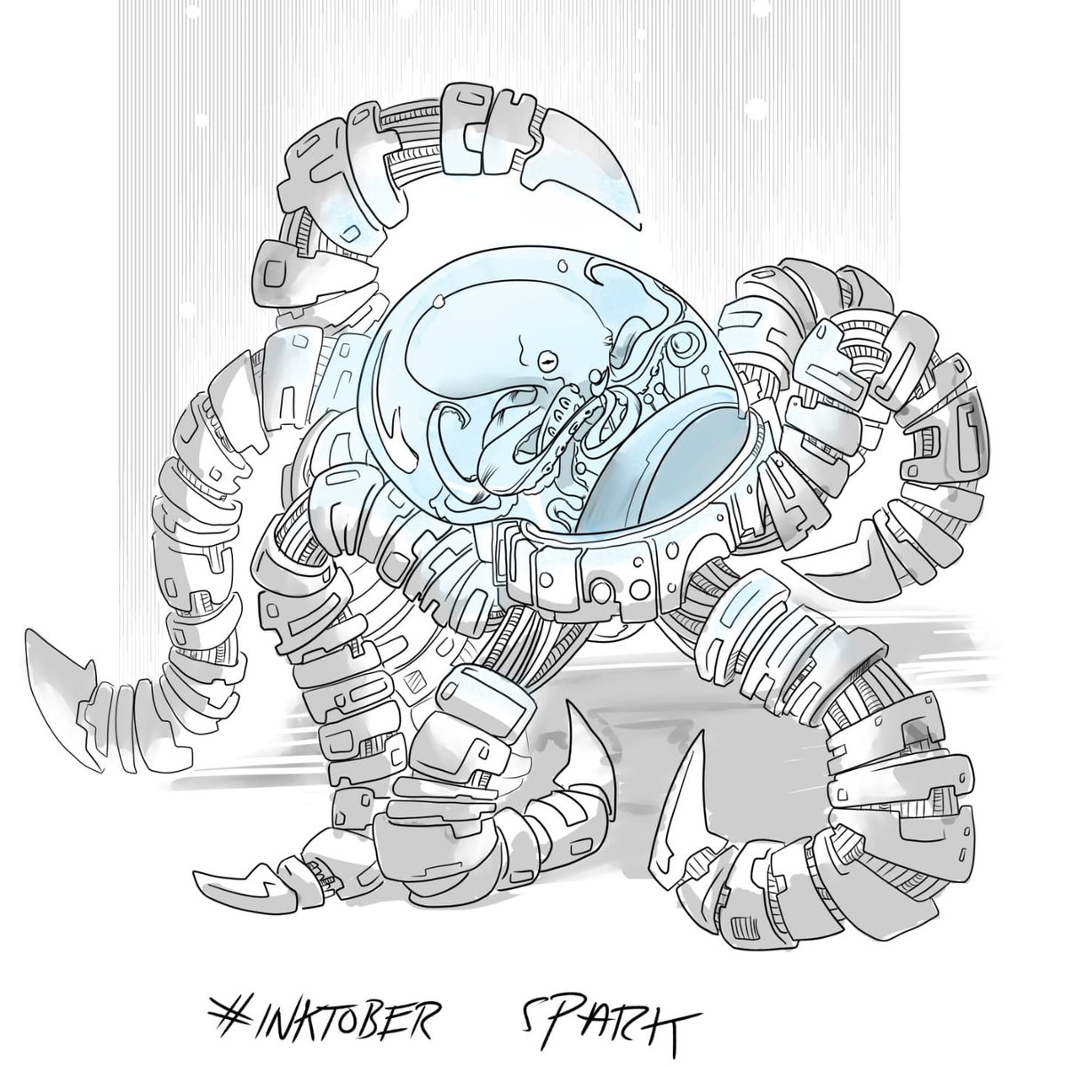 Day 16:”compass”. I know it’s not a compass. Messing around with the ink and some masking fluid. . . . #inktober #inktober2021 #compass #ink #maskingfluid #speedballink #scifigeek #scifidaily #scifiartwork #scifiart #scififan #spaceart #spacetravel #asteroid #signposts