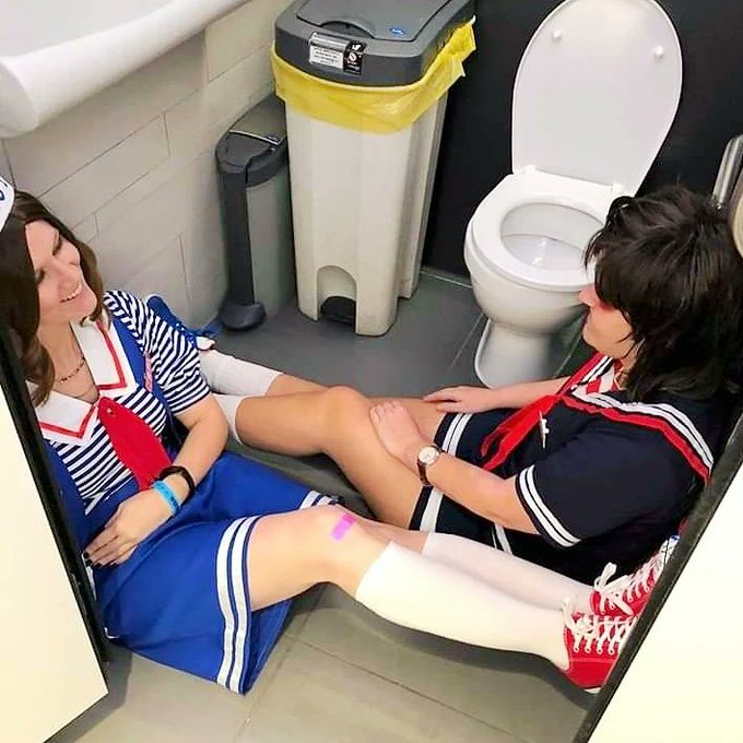 Happy birthday to one of my favourite people! Thanks for sitting on toilet floors with me 😂😘 #StrangerThings #SteveHarrington #RobinBuckley #ScoopsAhoy #Cosplay