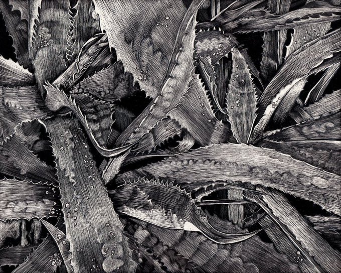 This is a #scratchboard drawing I did as part of a series on plants in the asparagus family, Asparagaceae. This one is Agave--yes, like the kind you would use to make a tequila #sour. #inktober2021 #inktober