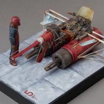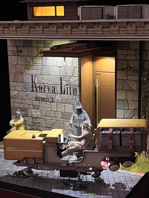 #Fantadelic001 「departure」完成しました。 ホバーで旅するロマニーの出発の様子です。 モケイで紡ぐ異世界シリーズ第1弾、これにて終了です。 また展示会前とか手を加えると思うけどね。 #scratchbuild #diorama