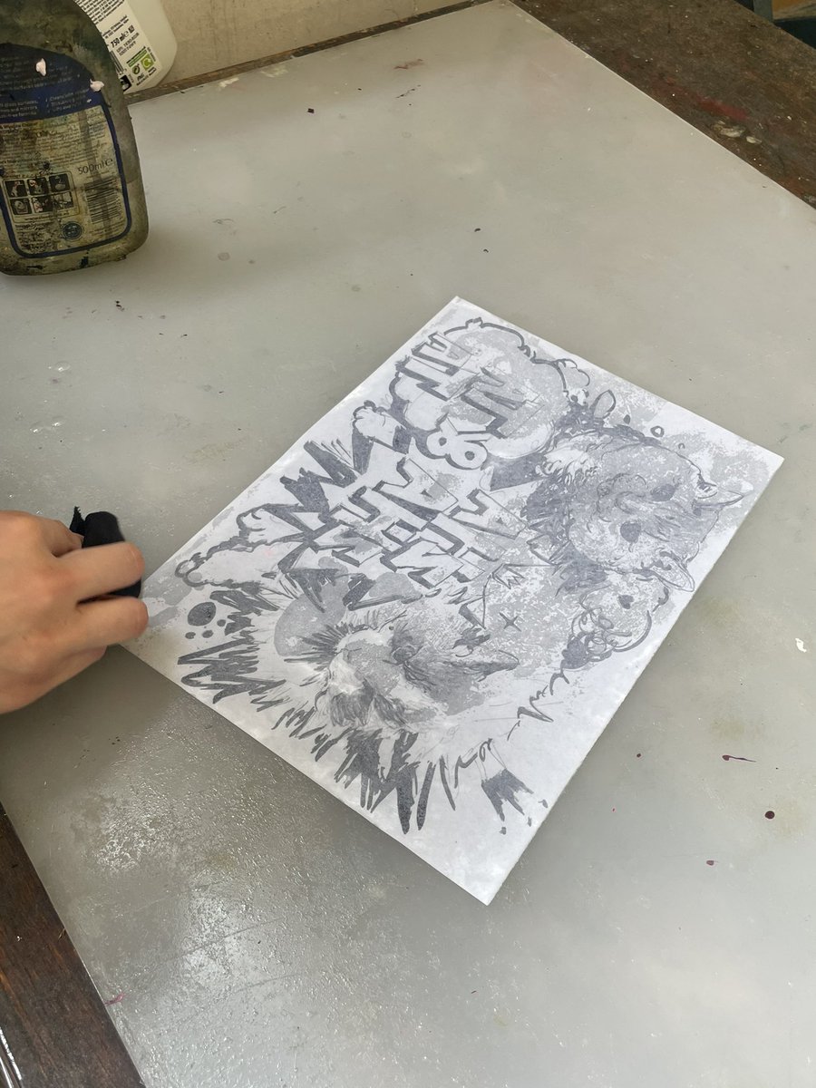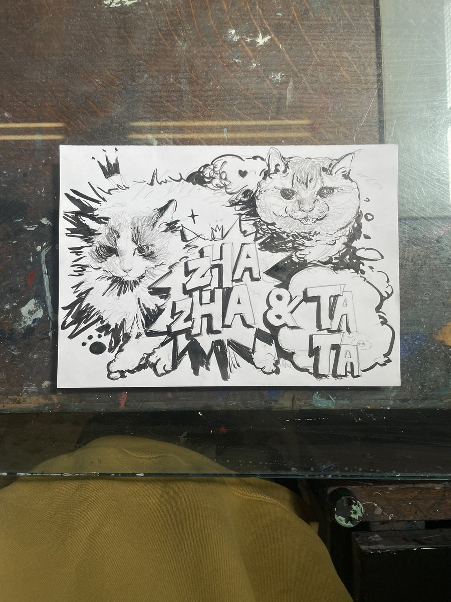 于是拿了张A4和工作室仅有的几支笔摸鱼涂鸦😂 非常凑合的一次screen print 还挺快乐就是 #screenprint #print #sketch #sketchbook #doodle #絵描きさんと繋がりたい #art #artwork #illustration #イラスト #sketching #cat #ねこ #猫