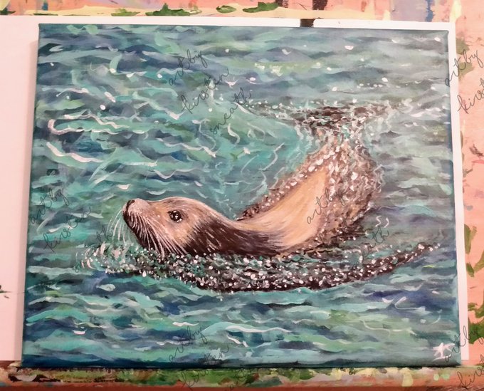 Finally finished this sea lion painting! He's been sat half done for far too long! Inspired by my own photo taken @PtDefianceZoo Hope you have a great weekend! #sealion #sealionpainting #pacificnorthwest #pointdefiancezoo #sealife #oceanlife #acrylicpaintings #animalspaintings