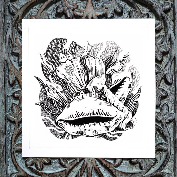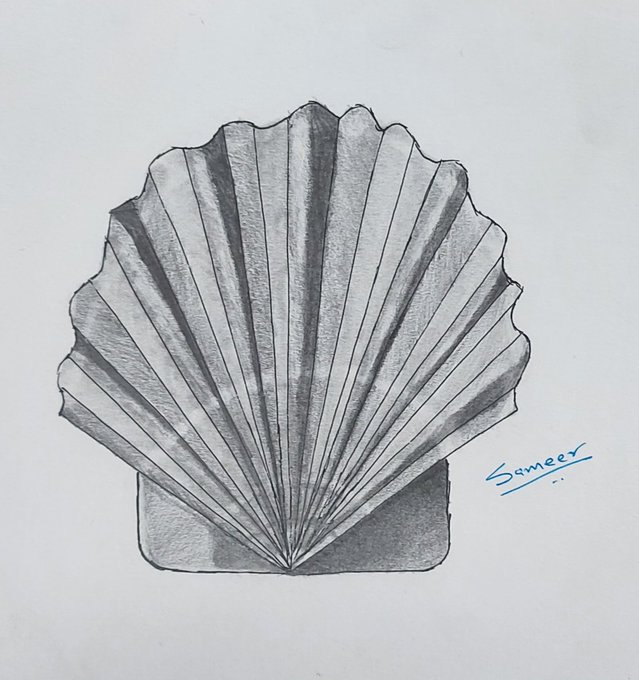 Inktober day 4 : Scallop @inktober #inktober #inktober2022 #inktoberday4 #seashells #sea #nature