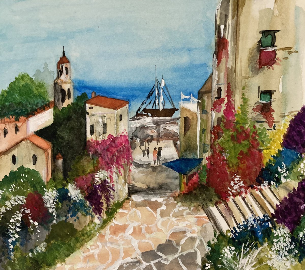 ☀💕☀ My watercolour painting ( from the clifftop ) of Kynance Cove, Cornwall . . . happy memories ☀💕☀ @Davidjsalter #artshare #seaside #beach #summer #holiday #Cornwall #art #watercolour #watercolor #watercolourpainting