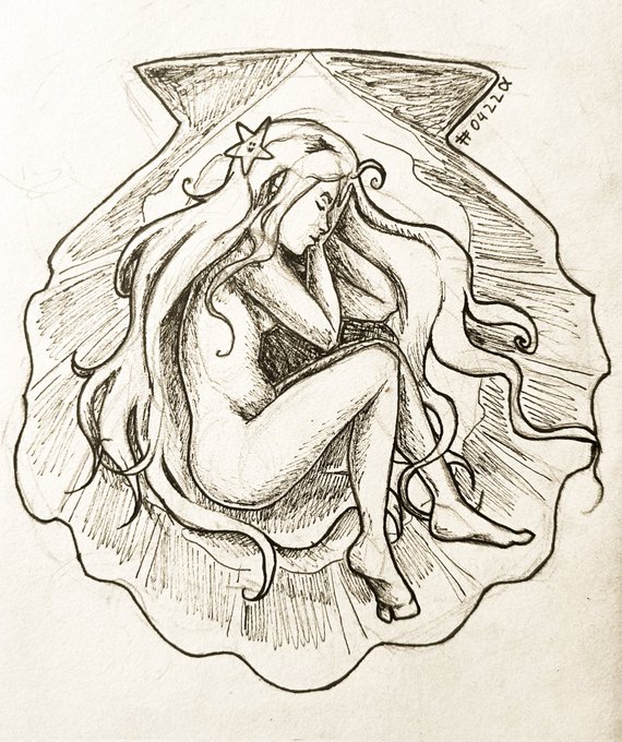Hellowis, today inktober nr 4! I made my own version of Aphrodite🐚 #art #inktober #inktober2022 #aphrodite #afrodita #goddess #scallop #challenge #hair #beautiful #seastar
