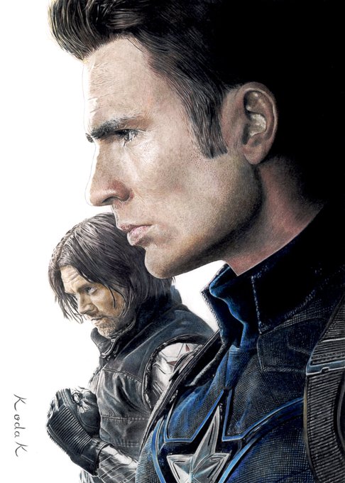 色鉛筆でスティーブロジャース(キャプテンアメリカ)と相棒のバッキーを描きました! #CaptainAmericaCivilWar #ChrisEvans #SebastianStan #色鉛筆