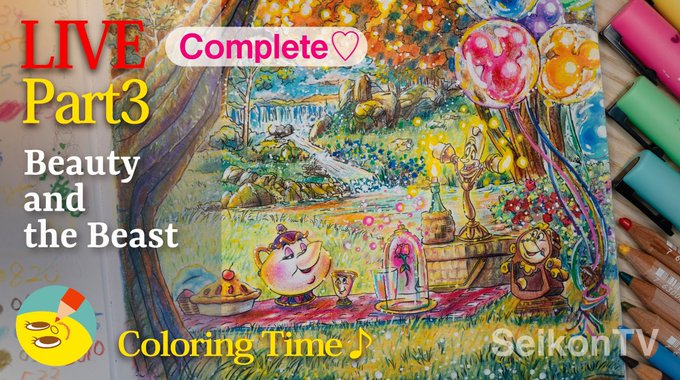 昨日のぬりえ配信ご視聴ありがとうございましたー!✨みなさんのコメントと、不思議の国のアリスの世界に塗りながら癒されました🌈 YouTube Live youtube.com/live/zRJUReUqQ… #seikontv #色鉛筆