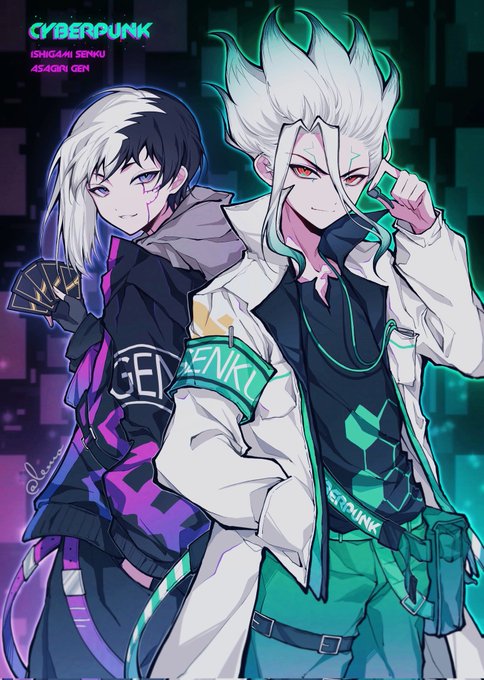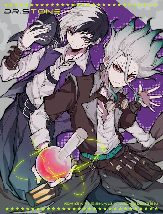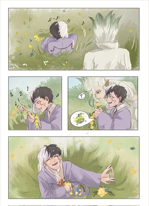 давайте просто представим что Сенку не умеет плести венки от слова совсем а Ген часто делает их для деток деревни #AsagiriGen #SenGen #IshigamiSenku #drStone #fanart #сенген