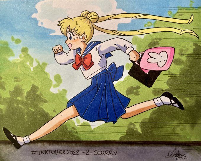 🎨 #inktober2022 🎨 Jour 2 - #scurry / #seprécipiter Pas facile le theme; il m’a pas du tout inspiré à part que ça m’a fait penser à Usagi qui est tout le temps en retard à l’école 😅