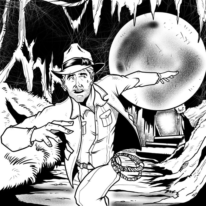 Se précipiter 🏃🏻 inktober jour 2 ! #seprecipiter #scurry #indianajones #inktober #inktober2022 #blackandwhite #inking #art #draw #drawing #dessin #comicartist #harrisonford