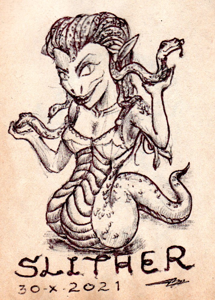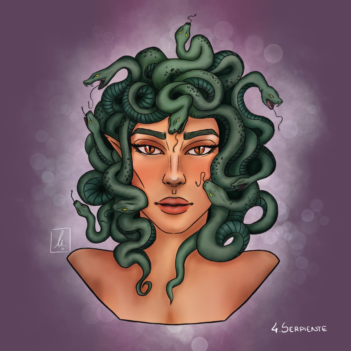 #Inktober día 30: #culebrear La culebrera mayor: ¡#Medusa! 💁♀️🐍 #Inktober2021 #ilustración #deslizarse #ondular #serpiente #slither #snake #Gorgo #monster #illustration