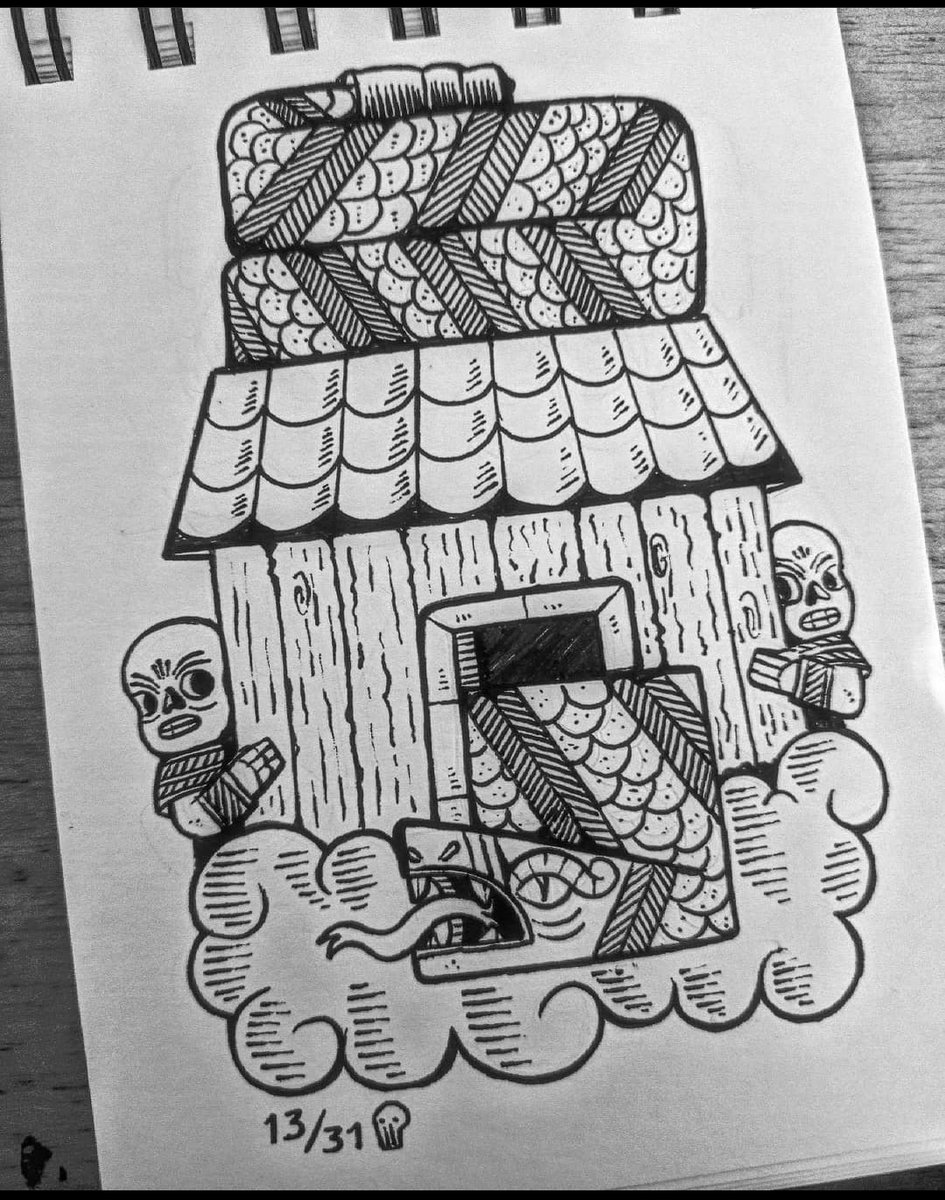 Nos cayó del techo una serpiente, que nos quería picar 12/31 Roof🔥💀🍃🐍🔥 @inktober #Roof #Calaveritas #Serpiente #Mascaras #ilustration #ilustracion #ilustradoresmexicanos #CalaveritasMexicanas #México #Máscaras #ilustracion #sketchbook #inktober #inktober2021 #inktoberMexico