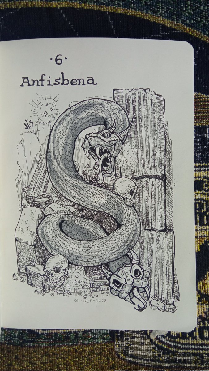 Día 6: Anfisbena La ironía sería que tus dos cabezas terminarán devorándose entre ellas, Anfisbena 💀🖤 #sketchbook #traditionalart #anfisbena #serpiente #mitologia #Inktober #dibujo #spookymonth #myth