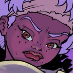 Face in progress. I might end up keeping the purple hair and eyebrows. #comicbookartist #fantasyartist #spacegirl #sexy