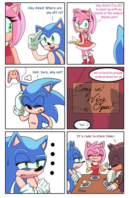 "He...?" Lmao #fanart #shadamy #sonamy all characters #SonicTheHedgehog #amyrose #ShadowTheHedgehog owned by #sega