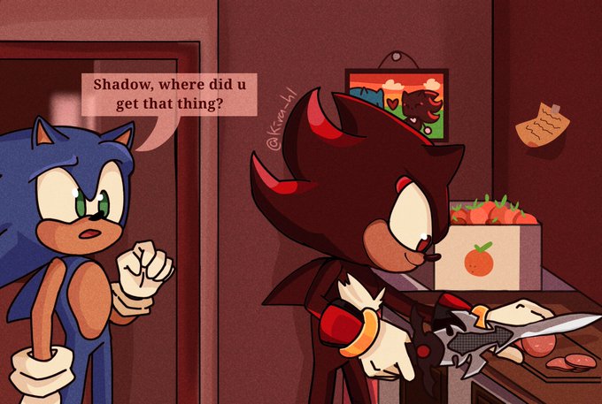 Shadow cutting food with his New sword. #shadowthehedgehog #SonicTheHedgehog #sonadow #Sonic #sonicfanart #shadowfanart