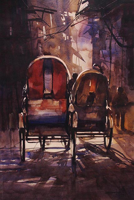 winter morning light on the old city street' watercolor by Shahanoor Mamun size- 72cm x 47cm. . . . #wintermorninglight_onthe_oldcitystreet #watercolorolddhakacity #rickshawchallenge #shahanoormamun #watercolorpainting #watercolor