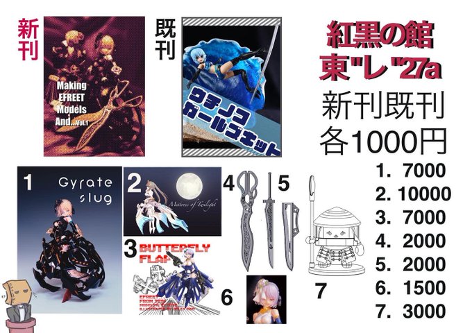 というわけで本日のお品書きです #Shapr3D とかでこんなん作ってるよーな新刊とプラバンを焼いた既刊、それと拙作と委託のGKも持参してます #メガミデバイス #C100おしながき twitter.com/YFL019ADA/st…