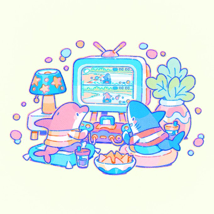 Day 9 - Shark vs Dolphin Dipper and Makko are seen as rivals at the mangrove school, but they’re just friends who like to play video games together. 🐬🎮🦈 #Sharktober #sharktober2021