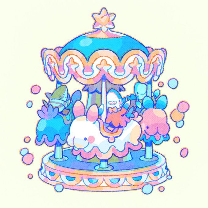 Day 21 - Bunny Shark The shark kids have fun on a carousel of sea slugs, the bunnies of the ocean! 🎠✨ #Sharktober #Sharktober2021