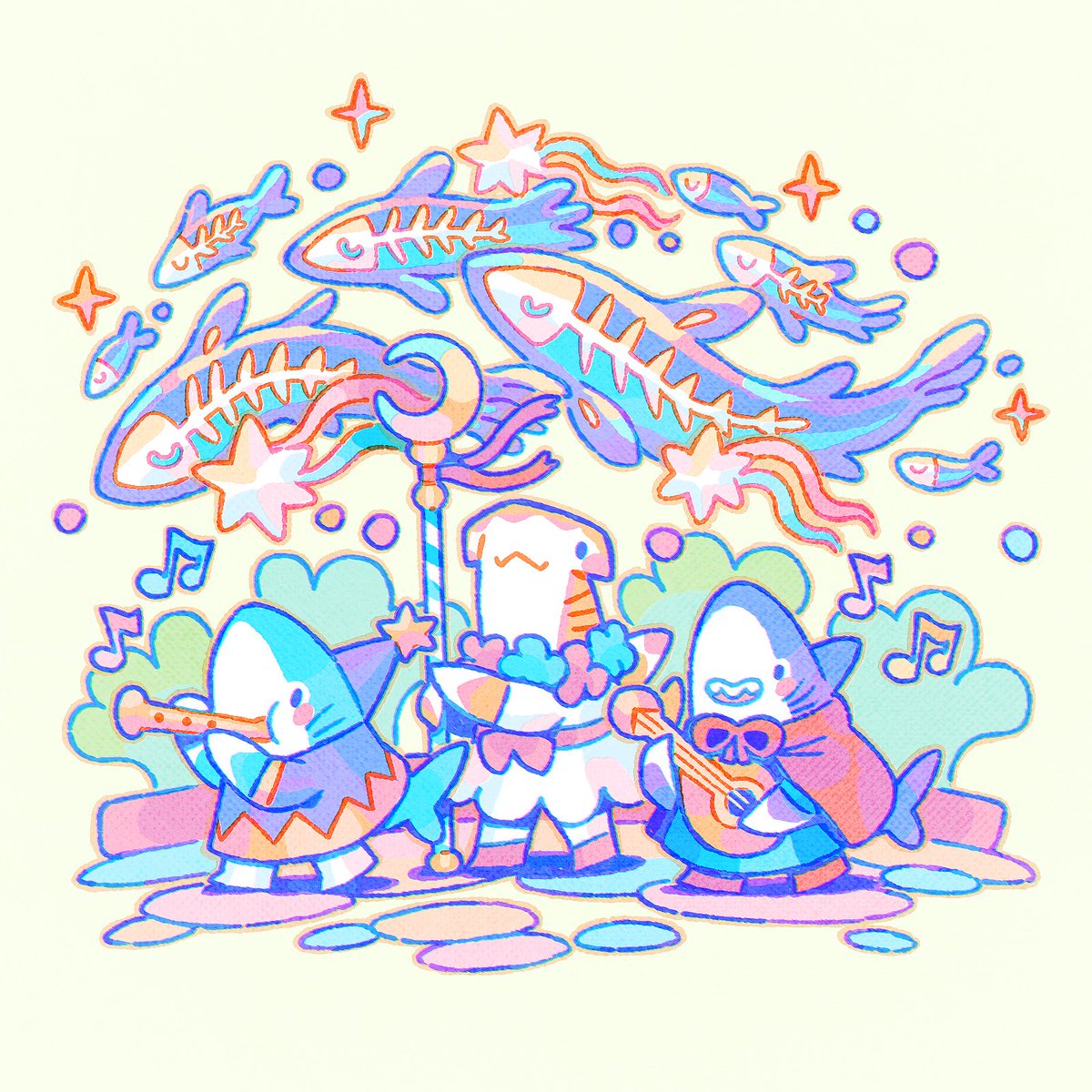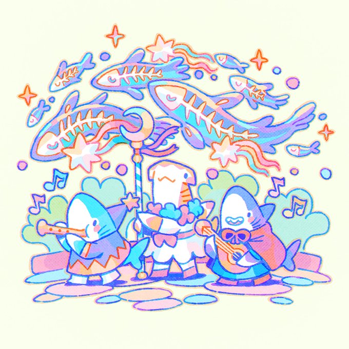 Day 13 - Shark Festival At the beginning of school holidays, children waltz and celebrate the Jellysummer, the day when the jellyfish spawn fill the sea with their presence. But it seems there are more jellyfish than last year... 🎊✨ #Sharktober #sharktober2021