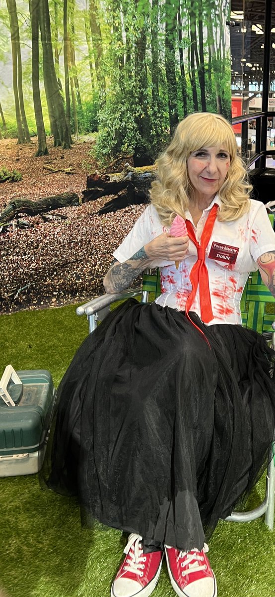 "You've got red on you." What better #cosplay to do when selling your #zombie game then #shaunofthedead?