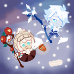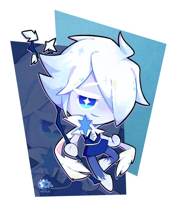 Quando você ver o primeiro floco de neve do inverno, olhe para cima! Talvez você consiga ver o Biscoito Sorbet! ❄️ Você já tem o Biscoito Sorbet? 💙 Fanart por: @jhiyomin no Instagram. Nos marquem para publicações! #cookierunkingdom #cookierun #sherbetcookie #cookierunfanart