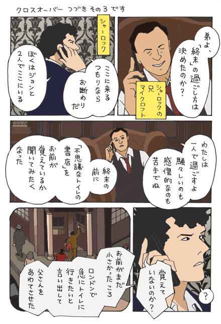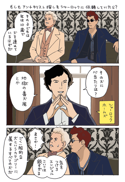 前に描いた「シャーロックとグッドオーメンズのクロスオーバーが観たい!」漫画です 長いですが、よろしければお付き合い下さい☺️ #SHERLOCK #GoodOmens (次回スレッドに続きます)