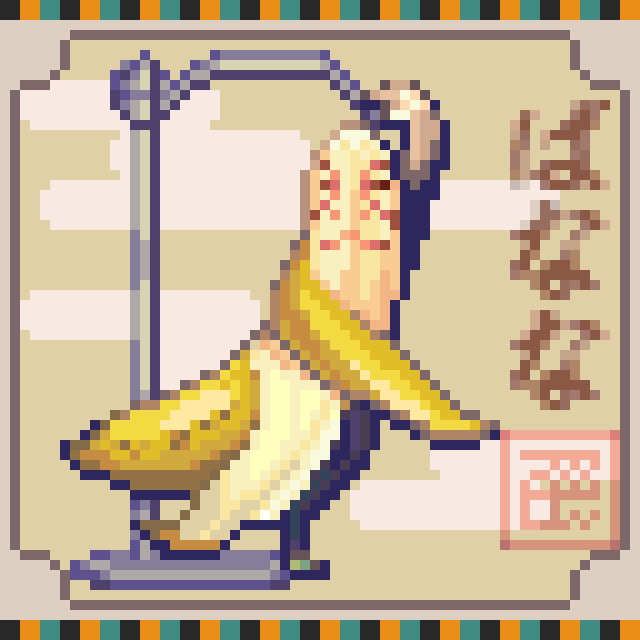 テーマは「バナナ」「歌舞伎」を選択。 タイトル 「バナナの歌舞伎剥き」 Limited Pixel Art 64×64 見得切り剥きでもよかったかもしれない。 どんな物事でもいろいろなモノや人に支えられて、みんなが活躍できているよね。 pixel-art.jp/contest/ #shibuyapixelart2022 #ドット絵 #pixelart
