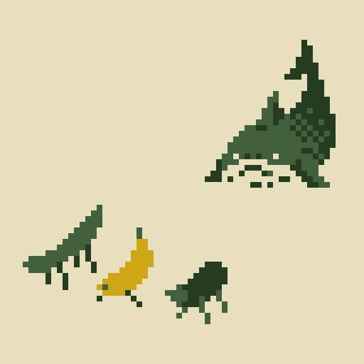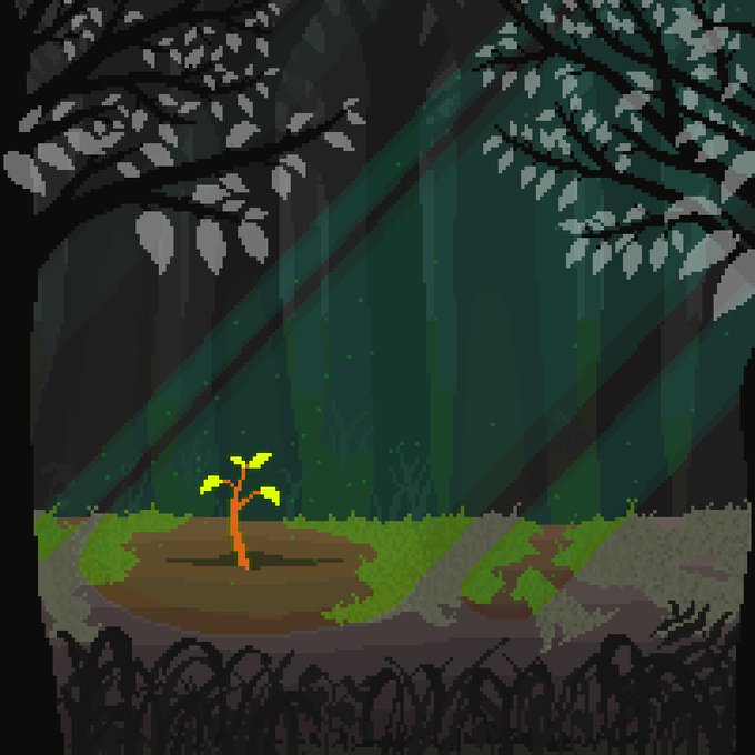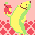 タイトルは順に、 「芽生」(16×16 テーマ「生まれたて」) 「徒長」(32×32 テーマ「バナナ」) 「腐敗」(64×64 テーマ「ゲームオーバー」) です。 身体の成長を画素数の増加で表現しました。 #ドット絵 #pixelart #shibuyapixelart2022