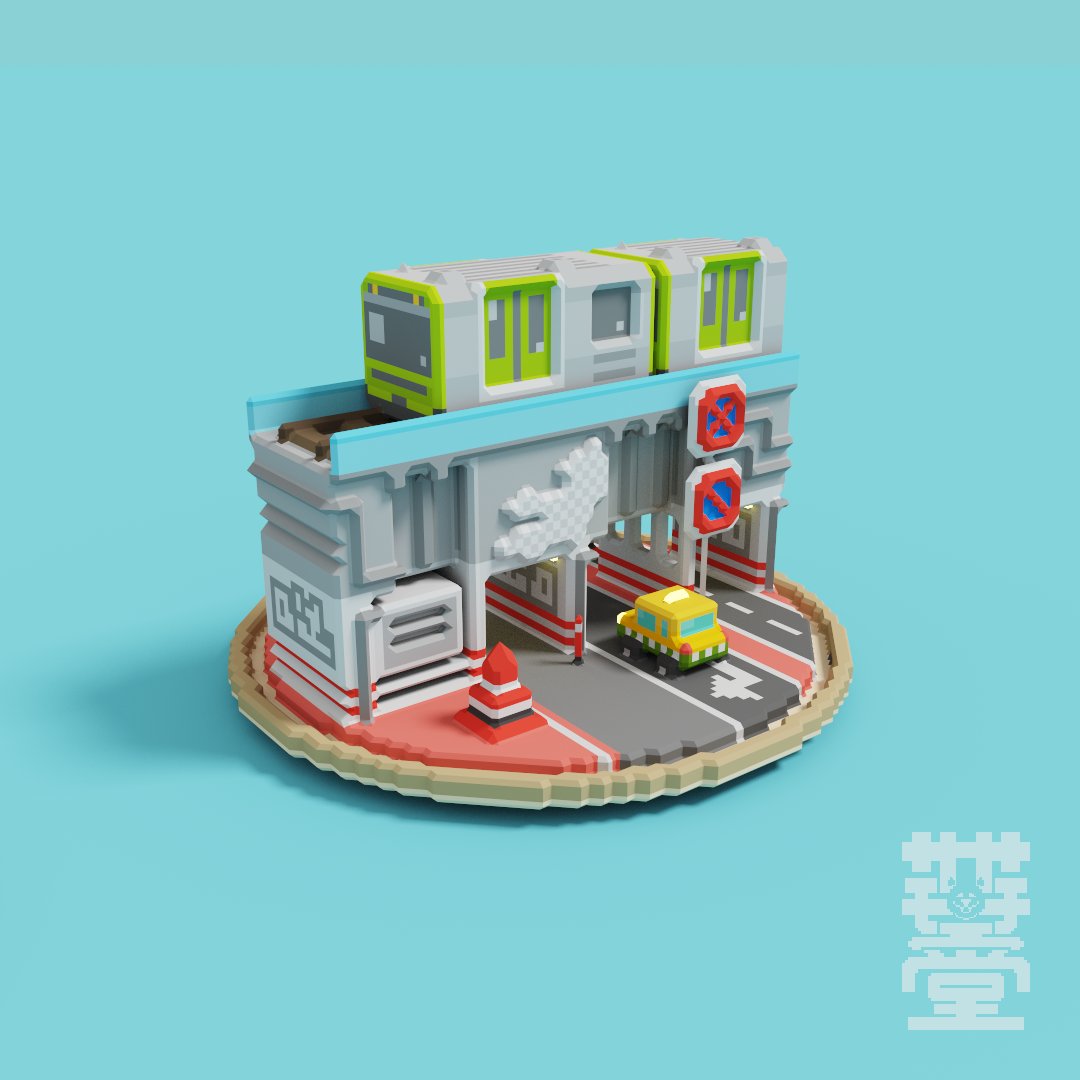#shibuyapixelart2022 『ヒーロー不在の高架下』 / Under the Train Track Without Heroes #voxelart #pixelart #magicavoxel