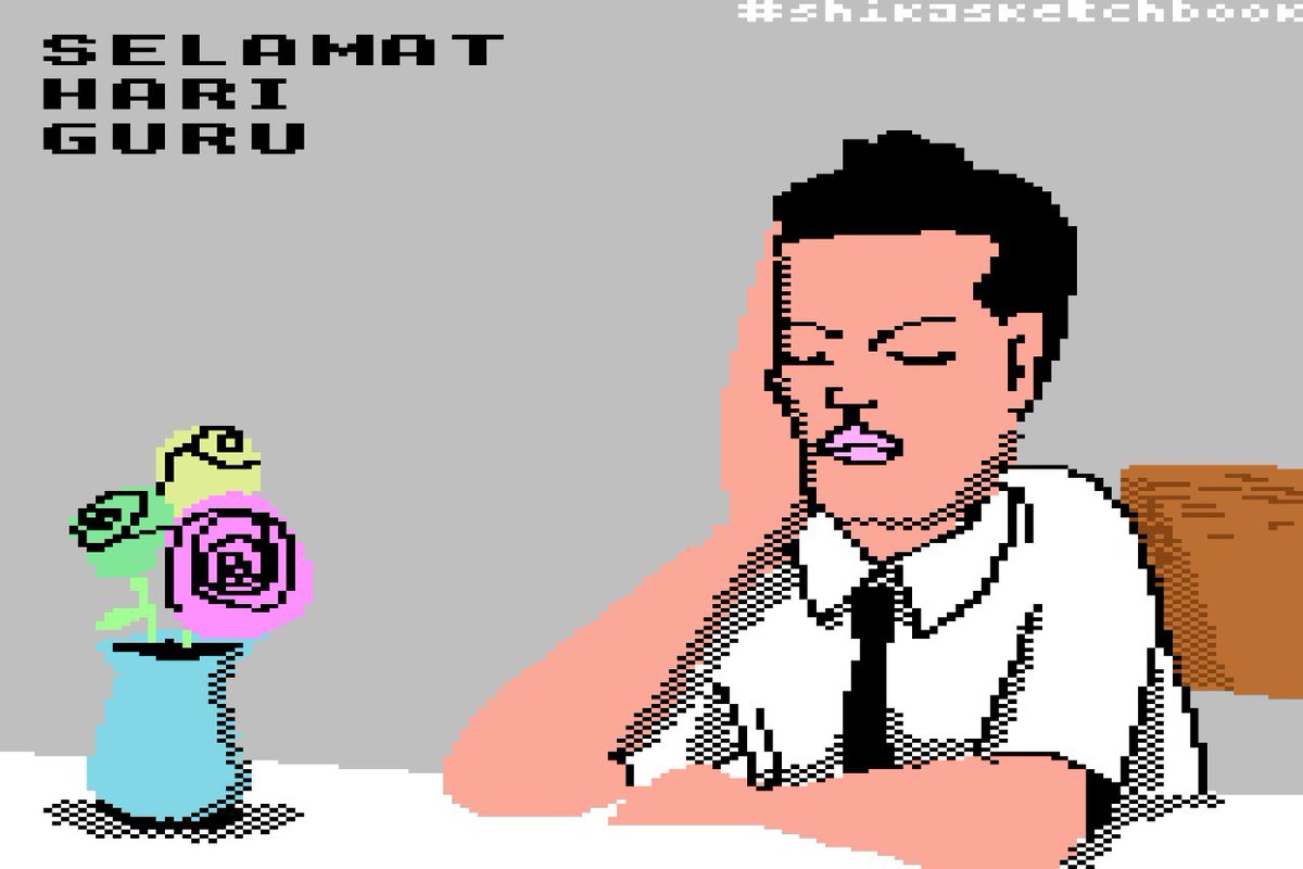 22May22 Title: Hari Guru Size: 160 x 200 pixels #shikasketchbook #aseprite #pixelart #pixel_dailies #16bit #16bitart #ドット絵 #selamathariguru #cikgu