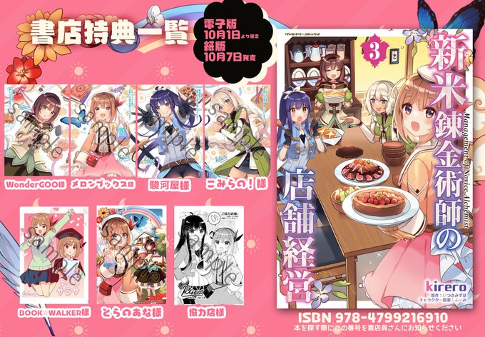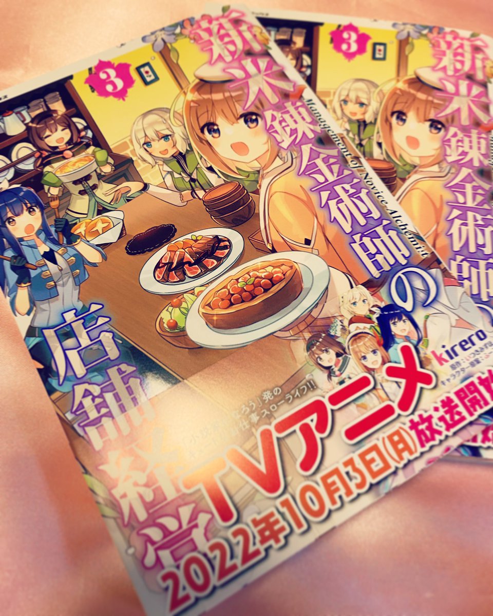 コミカライズ版 新米錬金術師の店舗経営3巻見本誌頂きました📚 発売日はアニメ放映日の10月3日から4日後の10月7日発売です‼️ どうぞよろしくお願い致します🤘 #shinmai_renkin